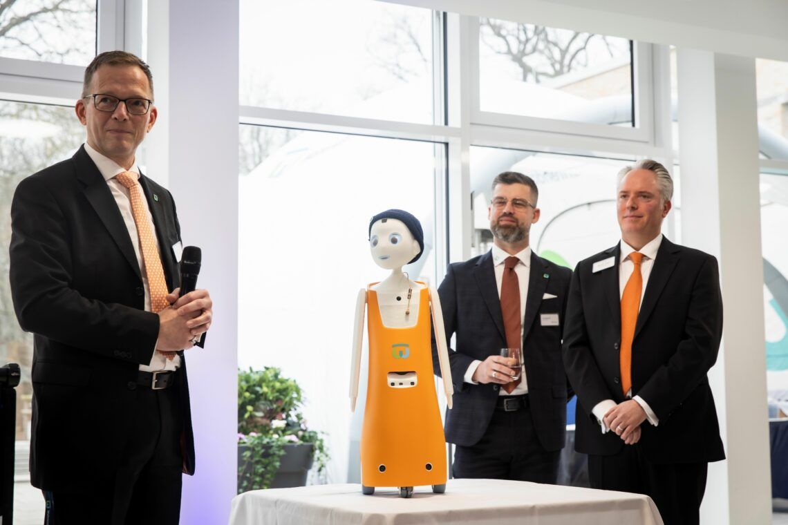 Ein Höhepunkt des Neujahrsempfangs war NEO, ein neuer sozialer Roboter, der derzeit im Therapiebereich „Seelische Gesundheit im Alter“ sein Trainee-Programm durchläuft. NEO ist Teil eines KI-Versuchslabors im Klinikum, zu dem auch Kalle, ein Reinigungsroboter, und Elli, eine Roboterin, die Besucher zu den Stationen führt, gehören. Als Socialbot soll NEO Gespräche erleichtern, den Zugang zu Angeboten vereinfachen und eine positive Atmosphäre schaffen.